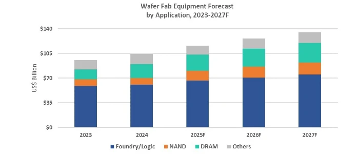 WFE sales for foundry and logic applications are expected to show robust 9.8% year-over-year growth to USD 66.6 billion in 2025, supported by resilient spending for advanced nodes. The segment is forecast to see 5.5% growth in 2026 and a 6.9% increase to USD 75.2 billion in 2027 as chipmakers add capacity for AI accelerators, high-performance computing and premium mobile processors. Investments will increasingly target leading-edge technologies as the industry moves toward high-volume manufacturing at the 2nm gate-all-around (GAA) node.